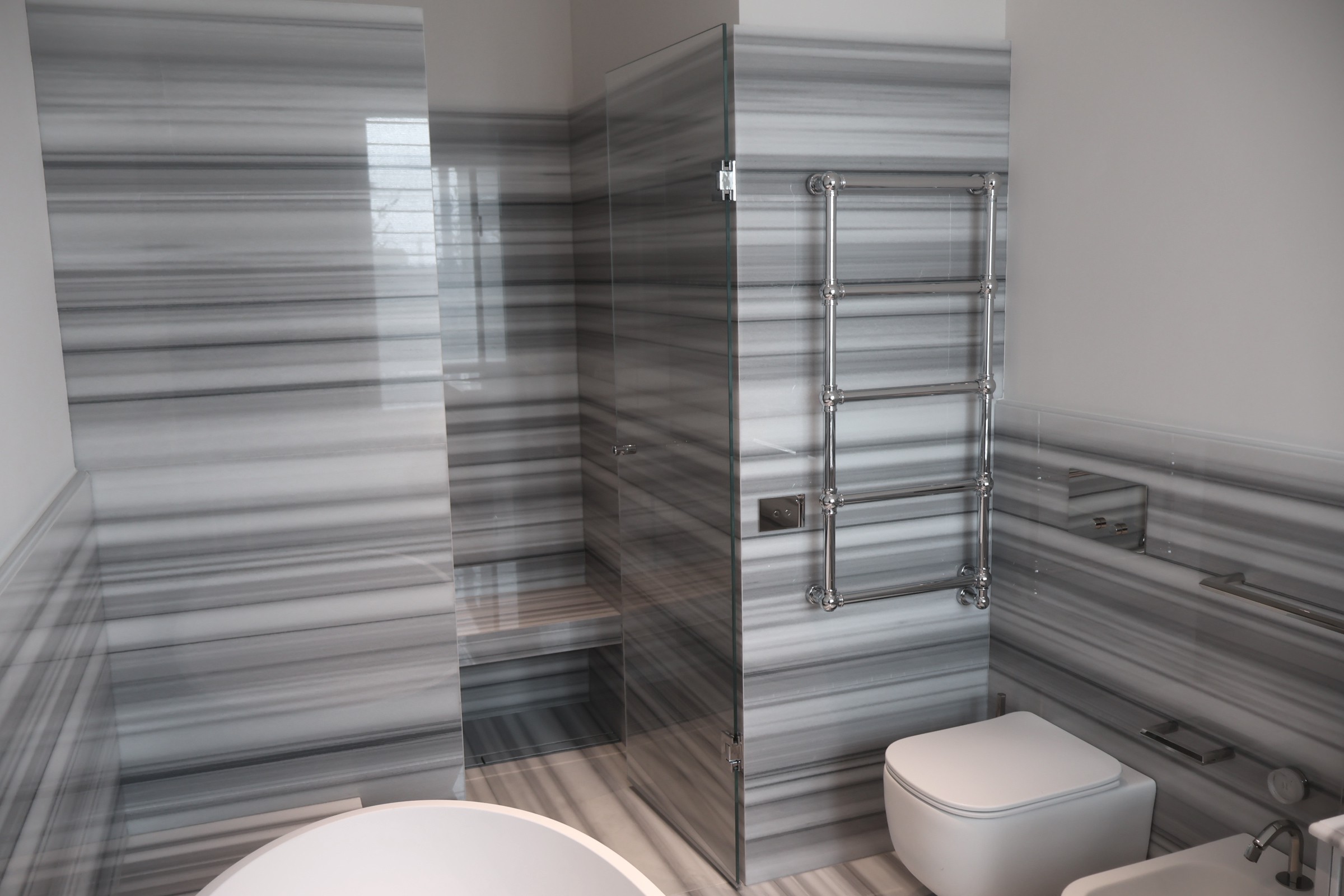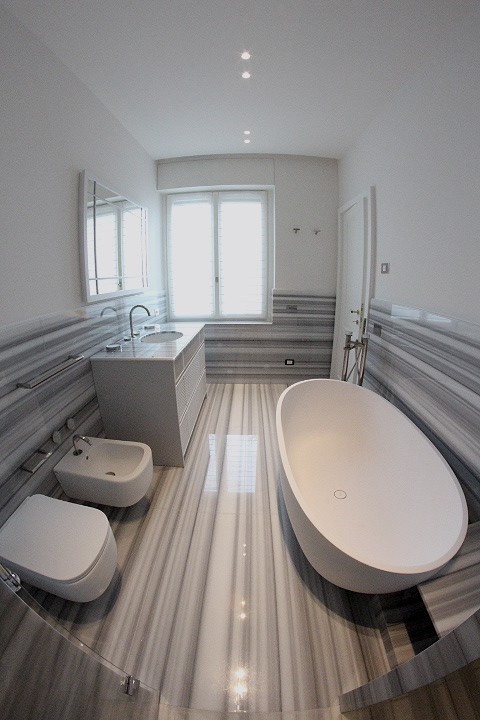 Eleganza senza tempo nel cuore di Milano: il bagno padronale in Striato Olimpo